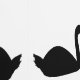 This awesome wallpaper features a digital art image of a pair of beautiful black swans facing each other and looking like they are kissing. They are black with red eyes and beaks.