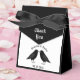 This awesome Wedding favor box features a digital art image of a pair of beautiful black ravens facing each other and looking like they are kissing. They are black with beady eyes and gray beaks and feet. There is custom text so you can include the names of the happy couple and the Wedding date.