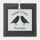 This beautiful glass Christmas ornament for newlyweds features a digital art image of a pair of beautiful black ravens facing each other and looking like they are kissing. They are black with beady eyes and gray beaks and feet.