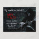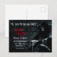 A unique gothic wedding save-the-date postcard featuring the grim reaper and his Scythe.