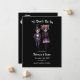Save the date card featuring a couple of elegantly dressed skeletons.