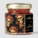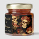 This gothic wedding favor honey jar features a pattern of creepy skulls floating in a black abyss behind your custom text. Each skull is adorned with red roses for your romantic occasion. Their empty soulless eyes are contrasted sharply against the goth rose crown and bouquets of dead flowers. A funny and morbid twist on marriage.
