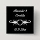 This awesome Wedding button features a digital art image of a pair of beautiful white scorpions facing towards each other. Each scorpion is white and has eight legs, a venomous sting and a pair of pincers. The pincers are being held together to form the shape of a heart. The background is black. A beautiful gothic Wedding design. There is custom text so you can include the names of the happy couple and the Wedding date.