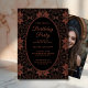 Celebrate a birthday with this elaborate design that would fit with a goth vibe birthday party. With this customizable template you can change all of the details and add a photo on the back. Designed for those who love a touch of richness with the tone on tone colors, this invitation offers space for an optional photo and personalized message on the back—perfect for sharing memories or adding more details.