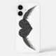 This awesome iPhone case features a pretty gothic black heart with the appearance of fine lace. The heart is flanked on both sides with shining metallic silver wings.