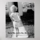 A poster depicting a young girl running towards an outhouse.