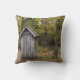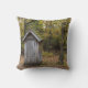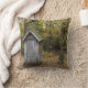 Throw pillow featuring a wooden outhouse at Pioneer Village at Harry S Truman Dam Visitor Center in Warsaw, Missouri, United States. Before bathrooms were built in houses, they used outhouses.