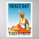 A retro poster that never was until now. A recreation of an old poster that should have been. A Grace Bay Beach vintage style beach scene from the art deco era. Bright colors with a woman on the beach sun bathing with a red blanket and a flapper style polka dot cap. Exclusively on Zazzle.com/Retro_Art Store.
