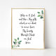 Grace Before Meals Catholic Prayer print features a greenery calligraphy design.