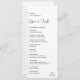 Modern wedding program featuring a simple and minimal geometric design with a vertical line along the left side with your details in left alignment. Your names are in a handwriting script for an elegant touch. In the bottom right corner is your two initial monogram over a small horizontal line. The color palette may be changed in the design editing tool.