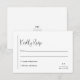 Modern wedding RSVP card featuring a simple and minimal geometric design with a vertical line along the left side with your details in left alignment. "Kindly Rsvp" is in a handwriting script for an elegant touch. In the bottom right corner is your response due date. The back has your monogram and wedding date with a horizontal line in between. The color palette may be changed in the design editing tool.