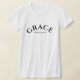 My overall review is that the T-shirt is nice, it fits true to size however the font is significantly smaller than advertised and you can't read it. The printing is unreadable and there is a strain to read it. It does not look like the advertised product. Maybe the shirt color is darker or a larger more visible font should have been used. Photos with and without flash and font is barely legible.