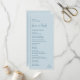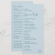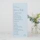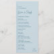 Modern wedding program featuring a simple and minimal geometric design with a vertical line along the left side with your details in left alignment. Your names are in a handwriting script for an elegant touch. In the bottom right corner is your two initial monogram over a small horizontal line. The color palette may be changed in the design editing tool.