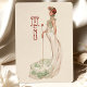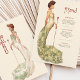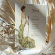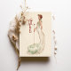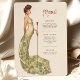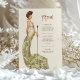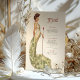 Add a touch of elegance to your wedding reception with this Art Nouveau-inspired menu card. The front design features a graceful figure in a flowing ivory gown adorned with intricate green floral patterns, holding a single red rose. The vintage typography and muted beige background enhance the romantic and sophisticated feel. The back showcases a mirrored design with the menu elegantly displayed in a serif font. Perfect for garden, vintage, or Art Nouveau-themed weddings, this menu card is a timeless keepsake for your special day.
