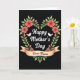 This card features a heart-shaped wreath of lush green leaves in emerald and sage tones set against a deep black background, creating a dramatic stage for a loving message ❤️. Coral-red flowers with softly layered petals and darker centers are scattered throughout the greenery, adding depth and a gentle, romantic warmth. Small buds and curling stems reach outward, like quiet gestures that mirror affection growing over time. Near the top curves of the heart, two simple white birds sit close together, their calm closeness suggesting a tender bond. Centered inside the wreath, the main greeting appears in flowing white lettering that stands out clearly against the dark backdrop. Across the lower portion of the heart, a parchment-toned banner stretches horizontally, adding a soft, textured contrast. On the banner, a smaller line of text is written in a warm reddish color, echoing the blossoms and adding a sweet, intimate touch 🌼. The birds are placed symmetrically on the upper arcs, facing inward above the white center text.