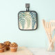 Graceful ferns in shades of green on a pale tan background creates a beautiful pot holder.