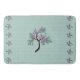 Add a calming focal point to your bathroom w/ a trendy bathmat featuring a graceful Asian flowering tree in mint sage green w/ plum colored blossoms.