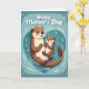 This card shows a tender hug between two stylized water-loving mammals, an adult and a smaller youngster, nestled close with rosy cheeks and wide smiles that suggest a trusting, affectionate bond ❤️. Their fur is painted in warm browns and creamy tones, with soft shading that makes their faces look gentle and calm. The pair sits centered on the front, surrounded by curling teal and light-blue water that wraps around them like an embrace. Those flowing water shapes meet to form a large heart outline, turning the background into a quiet scene of closeness and care. Small white dots scattered across the water read like bubbles, adding a light, floating sparkle 🌼. Near the top, a short celebratory message appears in white lettering, clearly separated from the illustration and easy to spot against the cool-toned background. A subtle grainy texture runs through the whole design, giving the colors a cozy, slightly tactile look without overpowering the image. The final detail is the heart-shaped water frame in teal and pale blue encircling the two smiling animals at the center.