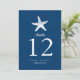 FROM THE GRACEFUL STARFISH WEDDING COLLECTION. Doubled Sided Table Number Cards perfect for your Rehearsal Dinner, Wedding Reception or any dining event. A single elegant starfish design in a NAVY BLUE Color. If you have any questions on this design or want a color change to match your wedding please email me paula@labellarue.com Check for the Wedding Suite, INVITATION, RSVP, RECEPTION and GUEST SEATING Cards to match! Don't forget to pick your favorite cardstock to have it printed on!