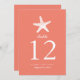 FROM THE GRACEFUL STARFISH WEDDING COLLECTION. Doubled Sided Table Number Cards perfect for your Rehearsal Dinner, Wedding Reception or any dining event. A single elegant starfish design in a PAPAYA / CORAL Color. If you have any questions on this design or want a color change to match your wedding please email me paula@labellarue.com Check for the Wedding Suite, INVITATION, RSVP, RECEPTION and GUEST SEATING Cards to match! Don't forget to pick your favorite cardstock to have it printed on!