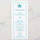 FROM THE GRACEFUL STARFISH WEDDING COLLECTION. A single elegant starfish design in a TEAL / TURQUOISE Color. Wedding Reception Menu Card in on an elegant narrow card. If you have any questions on this design or want a color change to match your wedding please email paula@labellarue.com BEFORE placing an order so any changes needed can be done before ordering. Check for the Wedding Suite, INVITATION, RSVP, RECEPTION and GUEST SEATING Cards to match! Don't forget to pick your favorite cardstock to have it printed on!