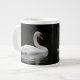 This awesome mug features a photograph of a beautiful white swan. The swan is a Mute swan. It looks very beautiful as it swims gracefully along a calm river.
