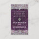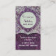 An opulent business card for a variety of businesses. A rich purple and sage green damask serves as a background for an ornate Victorian-style frame containing a business name. Below the damask changes to a deep rich purple. The reverse reveals both damask patterns to give a more detailed summary of a business. A perfect fit for an interior or textile designer, a boutique, hair or nail salon. Available with matching products.