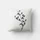 This black and white pillow features the silhouettes of grackles perched on a tree branch.
