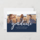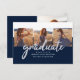 Announce your achievement in style with this 4 photo graduation announcement template card. Replace the text with your school or college name, details of your graduation, and what your future plans are on the reverse side.