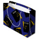 Creative graduation gift bag for your favorite class of 26 grad featuring black and gold caps on a blue background. To personalize, edit text to add graduate's name and his or her senior class year.