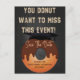 You Donut Want To Miss This Event fun play on words graduation save the date. Design includes a chocolate covered looking donut with a graduation cap and neon lights typography. Fun for today's modern grad. Sent this cool card to your family and friends to let them know that you are having a graduation event.