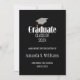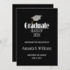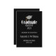 This is a simple and modern design with a gray graduation cap, yellow gold tassel, white text and black background. Yellow gold is printed color, not metallic foil.