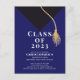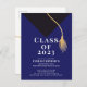 Start off your event right with our trendy & stylish black grad cap & gold tassel set on a dark blue background graduation party post card invitation. Perfect graduation invitation for a high school graduation or college graduation. Just fill in your information add your photo and you're all set to go. Visit our shop to view this graduation invite in a large assortment of school colors