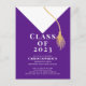 Start off your event right with our trendy & stylish white grad cap & gold tassel with a purple background graduation party invitation. Perfect graduation invitation for a high school graduation or college graduation. Just fill in your information add your photo and you're all set to go. Visit our shop to view this graduation invite in a large assortment of school colors