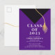 Start off your event right with our trendy & stylish black grad cap & gold tassel set on a purple background graduation party post card invitation. Perfect graduation invitation for a high school graduation or college graduation. Just fill in your information add your photo and you're all set to go. Visit our shop to view this graduation invite in a large assortment of school colors