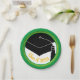 Serve your guests food on these Grad Cap Green and Gold Class Year Plates. Personalize with your grad's class year. It features an oversized grad cap with stylish script font in green.