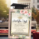 Grad Cap,Wine Glass,Flowers Rose Gold Graduation Invitation