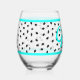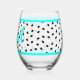 Graduation party set of glasses (or come as singles) with custom text in aqua blue. Black caps surround stemless wine glasses outlined in bright, aqua blue at top and bottom. "Grad" text can be changed to the name of the graduate, or other text like "Congrats" but it will print the same on all glasses.