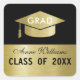 The words 'class of...', your own name and the graphic image of a faux gold graduation hat on black background... to announce your School or University graduate