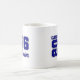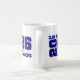 Grad senior ceramic coffee mug is shown in a blue and white color design.