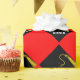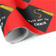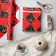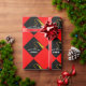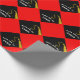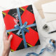 Modern graduation gift wrap and party decoration featuring artistic black cap design on a red background. To personalize edit text to add senior grad's name.
