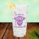 Create your own graduation glass with a purple design and the classic graduation cap and tassel motif in faux purple glitter for a one of a kind keepsake. Three text templates make it easy to personalize these tall graduation glasses - change the arched purple text at the top from CLASS OF to CONGRATULATIONS as you wish. The bottom purple text is perfect for adding your grad's name and then edit the graduation year in the middle of the mortarboard and tassel design or clear it away if you prefer an even simpler design. Create a set of personalized graduation glasses for a group of friends, a full set for the family for the ultimate graduation dinner or maybe just one as a keepsake for your favorite niece or nephew. The modern yet elegant faux purple glitter design will make these custom graduation glasses a unique and thoughtful gift.