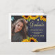 Floral elegant graduation announcement card featuring sunflowers bouquets and a faux gold chic typography script over a dark midnight navy blue chalkboard background.+++++++++ Easy to personalize with your name, school and class, your custom text, and photo on both sides!