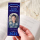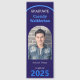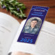 A photo graduation party bookmark favor in blue and white with an arch photo shape. Get this easy favor for your guests.