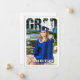 Grad text photo graduation announcement with white background. Personalize the text and add a photo of your graduate. Great for both college and high school graduating classes.