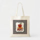 This personalized teacher bag will make a great gift. You can put her name and class or put in what ever wording fits the occasion. The background is black and white pokadots with ribbing around the white edged piece.