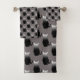 GRADIENT BLACK & WHITE CAT MOTIF IN CHARCOAL GRAY BATH TOWEL SET