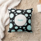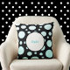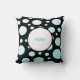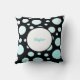 Personalize this fun funky modern polka-dots throw pillow with a Name or your own text within this border of blue and white gradient circles on black.
