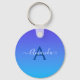 An elegant Key Chain with gradient blue color with Monogram and name. Just change the Name by clicking on "Personalize this Template".