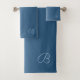 Elegant print of gradient blue. On bottom right corner there is a monogram.